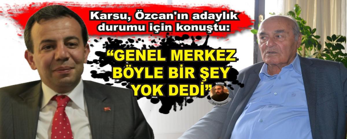 Cumhuriyet Halk Partisi İl Başkanı Kazım Karsu, partisinin Bolu Milletvekili Tanju Özcan’ın belediye başkanlığına adaylığı durumu için konuşarak, genel merkezi aradığını ve kendisine öyle bir düşüncenin olmadığının söylendiğini aktardı.
