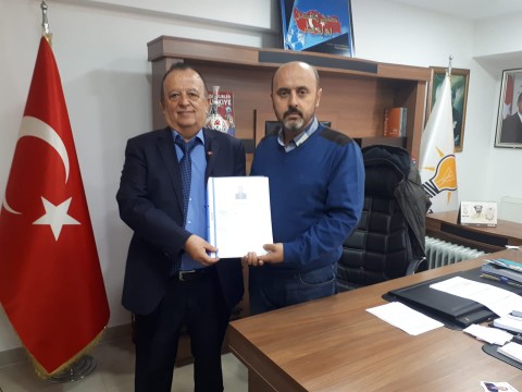 AK Parti Belediye ve İl Genel Meclisi Üyeliği Aday Adaylığı için Ömer Cengizhanoğlu, parti binasına gelerek AK Parti Merkez İlçe Başkanı Ahmet Eker’e dosyasını teslim etti.
