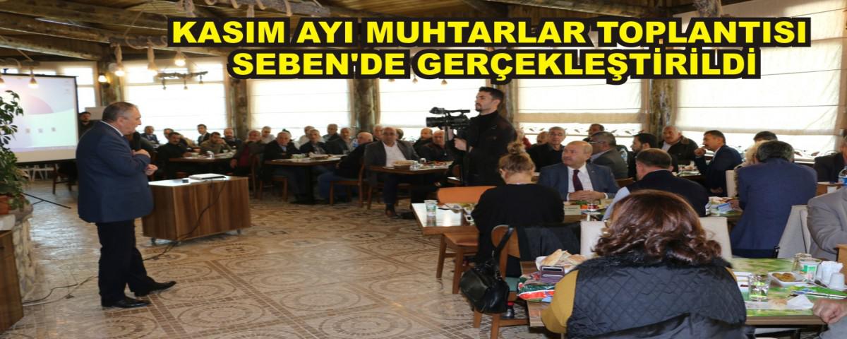 Bolu Belediye Başkanı Alaaddin Yılmaz, Kasım ayı muhtarlar toplantısında mahalle muhtarları ile bir araya geldi. Bolu Belediyesi Muhtarlık İşleri Müdürlüğü tarafından her ay organize edilen toplantıların Kasım ayı oturumu Seben Belediye Başkanı Süleyman Özbağ’ın ev sahipliğinde Seben Solaklar Kaya Evleri’nde gerçekleştirildi. Toplantıya Bolu Belediye Başkanı Alaaddin Yılmaz, Seben Belediye Başkanı Süleyman Özbağ, Bolu Belediye Başkan Yardımcıları İhsan Ağcan, Emine Davarcıoğlu ve Necmi Arman, Bolu Belediyesi Meclis üyeleri, Bolu Belediyesi daire müdürleri ve mahalle muhtarları katıldı.