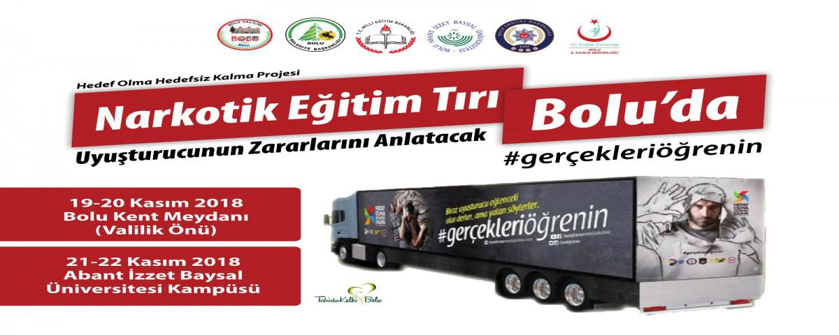 İstanbul Emniyet Müdürlüğü Narkotik Suçlarla Mücadele Şube Müdürlüğü'nün uyuşturucuyla mücadele kapsamında tasarladığı "Narkotik Eğitim TIR'ının bu seferki durağı Bolu olacak. Bolu’da iki ayrı noktada 19-20 Kasım tarihlerinde Bolu Valiliği önünde, 21-22 Kasım tarihleri arasında ise Bolu Abant İzzet Baysal Üniversitesi’nde eğitim verecek olan Narkotik Eğitim Tır’ı vasıtasıyla doğru bilinen yanlışlar gençlere anlatılacak.