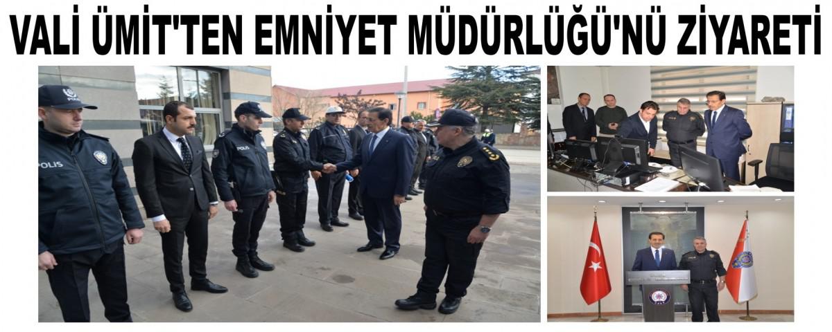 Ziyarette ilk olarak Emniyet Şeref Defterini imzalayan Vali Ümit, daha sonra İl Emniyet Müdürlüğü’nün şube müdürlüklerini ziyaret ederek iş ve işlemler hakkında bilgiler aldı. Vali Ahmet Ümit, ziyarette ayrıca ilin emniyet ve asayişi, İl Emniyet Müdürlüğü'nün bina, personel, araç ve gereç durumları hakkında brifing aldı. Vali Ümit; Asayiş olayları bakımından huzurlu bir kent olan Bolu'da özverili çalışmalarından dolayı emniyet mensuplarına teşekkür ederek görevlerinde başarılar diledi. Elif Erdoğan