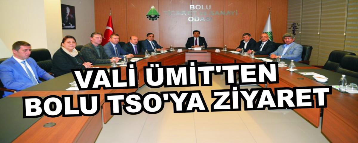 Bolu Ticaret ve Sanayi Odası ziyaretinde Oda Başkanı Türker Ateş ile Meclis Başkanı Halit Ergül tarafından karşılanan Valimiz Ümit, Başkanlık makamında Yönetim Kurulu üyeleri ile bir araya geldi. Ticaret ve Sanayi Odası Toplantı Salonu’na geçen Bolu Valisi Ahmet Ümit, Oda çalışmaları, Bolu’da faaliyet gösteren sanayi kuruluşları ve Bolu’nun ekonomisi hakkında Bolu TSO Başkanı Türker Ateş ve TSO Meclis Başkanı Halit Ergül’den bilgiler aldı.