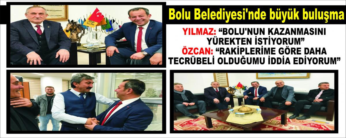 Cumhuriyet Halk Partisi Bolu Belediye Başkan Adayı Tanju Özcan, Bolu Belediye Başkanı Alaaddin Yılmaz’ı makamında ziyaret etti. Basın mensuplarına konuşan ikiliden Başkan Yılmaz seçimde Bolu’nun kazanmasını yürekten istediğini söylerken, Özcan ise diğer rakiplerine göre daha tecrübeli olduğunu iddia ettiğini belirtti.