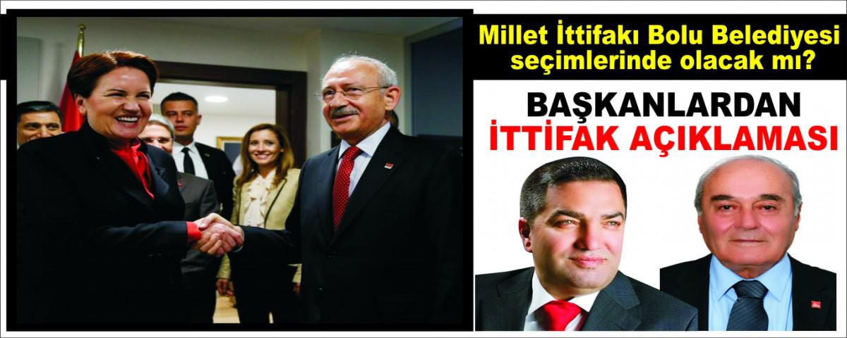 Cumhuriyet Halk Partisi (CHP) İl Başkanı Kazım Karsu ve İYİ Parti İl Başkanı Ahmet Örnekbaş Millet İttifakı ile ilgili gelinen son noktayı açıkladı. Başkanlar ‘Bolu için en hayırlısını yapmaya çalışıyoruz’ dedi. İyi Parti’den Bolu Belediye Başkan aday adaylığı için bu güne kadar her hangi bir başvuru yapılmadığı belirtiliyor.