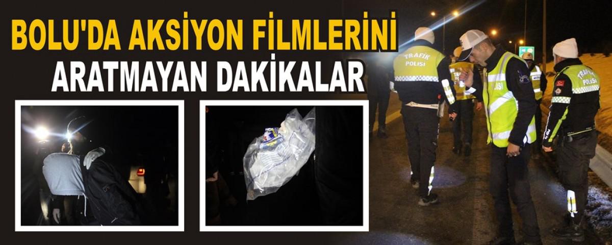 Bolu Emniyet Müdürlüğü Kaçakçılık ve Organize Suçlarla Mücadele ve Narkotik Suçlarla Mücadele Şube Müdürlüğü ekipleri, saat 21.30 sıralarında TEM yolunda uygulama yaptı. Uygulama sırasında durdurulmak istenen bir otomobilin sürücüsü 'dur’ ihtarına uymayarak kaçmaya başladı. Polis, Ankara istikametine doğru kaçan otomobilin sürücüsünü yaklaşık 10 kilometre kovaladı. Kaçan otomobildekiler, iddiaya göre camdan yola uyuşturucu maddeyi attıktan sonra durdu. TEM yolunun Bolu Batı mevkiinde duran otomobildeki 3 kişi, polis tarafından kelepçelenerek yol kenarında bekletildi. Bölgeye çok sayıda polis ekibi sevk edildi. Trafik polisleri yolda güvenlik önlemi alırken, çok sayıda polis yaklaşık 5 kilometrelik güzergah üzerinde yol kenarına atılan uyuşturucu maddeyi aradı. Yaklaşık 1 saat süren arama sonucu bir miktar skunk adı verilen uyuşturucu madde bulundu. Otomobilde bulunan T.B., M.Ö. ve Ç.T. gözaltına alındı. Şüphelilerin kullandığı otomobil ise detaylı arama yapılması için Bolu Emniyet Müdürlüğü otoparkına götürüldü. Olayla ilgili polisin çalışması sürüyor.