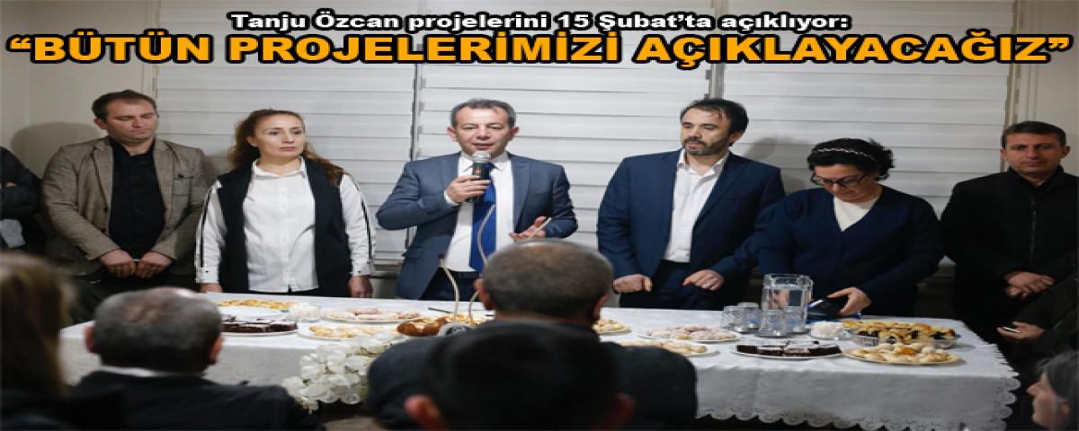 CHP Bolu Belediye Başkan Adayı Tanju Özcan, “Büyük bir ihtimalle 15 Şubat'ta bütün projelerimiz açıklayacağız. Üniversite yoluyla ilgili çok ciddi projelerimiz var bu projelerimizin hepsini kapalı spor salonunda yapılacak olan proje tanıtım programında açıklayacağız” dedi.