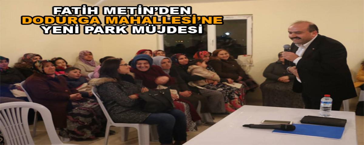 Metin, “Bir parkımız daha olacak. Yine çoluğunuzla çocuğunuzla Atatürk Orman Parkı’na Karaçayır Parkı’na gittiğiniz gibi büyük bir parkı Dodurga Mahallesi’nde inşa edeceğiz. İnşallah bünyesinde çeşitli etkinlik alanlarımız da olacak. Şimdiden hayırlı uğurlu olsun.” dedi. Metin’in park müjdesi, mahalle sakinlerinden büyük alkış aldı. A. Haktan Yamantürk