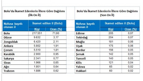 TÜİK illere göre hemşehricilik istatistiklerini kamuoyu ile paylaştı. Yapılan son açıklamada ilimizde Bolulu sayısı 217 bin 551 olarak belirtildi. Yapılan açıklamada Bolu’da yaşayan Düzceli sayısı ise 9 bin 632 olarak açıklandı.