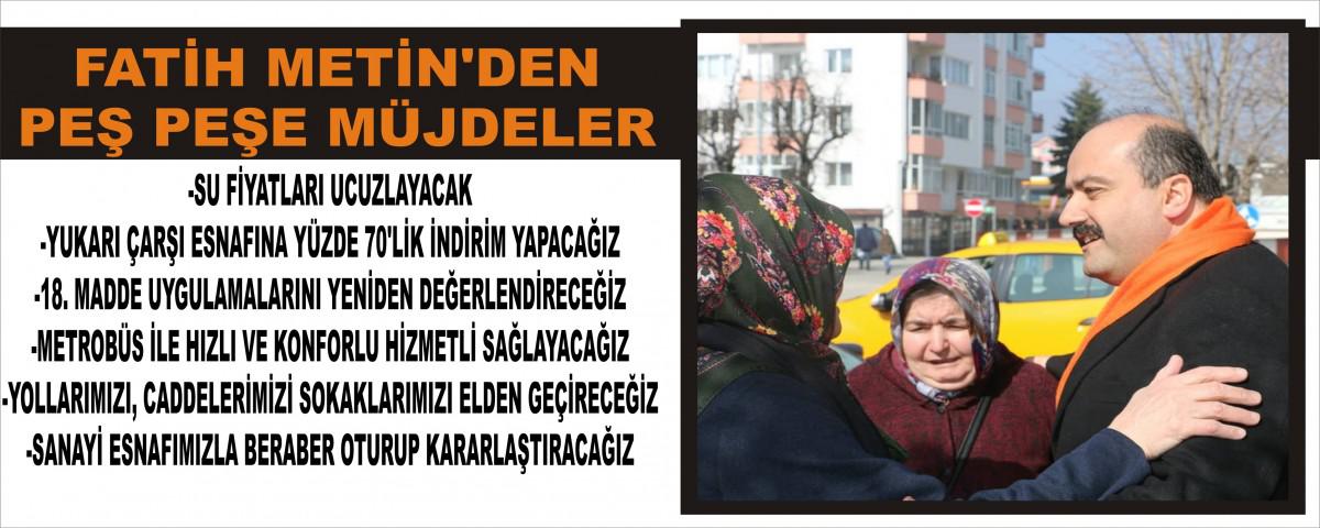 Metin, diğer önemli problemin ise 18. madde uygulamalarında yaşanılan mağduriyetler olduğunu vurgulayarak, “Onlarla ilgili de inşallah belediye başkanlığı yetkisini aldıktan sonra bir duyuru yapacağız. Diyeceğiz ki; 18. maddeden mağduriyeti olan her kim varsa bizlere müracaat etsin. Onları sıfırdan değerlendireceğiz.” dedi.