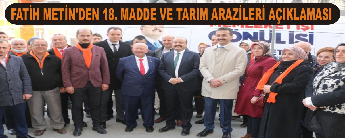 Cumhur İttifakı AK Parti Bolu Belediye Başkan Adayı Fatih Metin, 18. madde uygulamaları ve tarım arazileri konusunda önemli açıklamalarda bulundu.