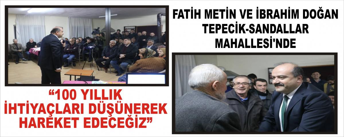 Cumhur İttifakı’nın AK Parti Bolu Belediye Başkan Adayı Fatih Metin, ittifak sonrası lehine adaylıktan çekilen İbrahim Doğan’la birlikte dün akşam Tepecik ve Sandallar Mahallesi’nde yaşayan vatandaşlarla buluştu. Mahalle sakinlerinin yoğun katılım gösterdiği programlarda Metin ve Doğan, halkın yoğun sevgisiyle karşılaştı.
