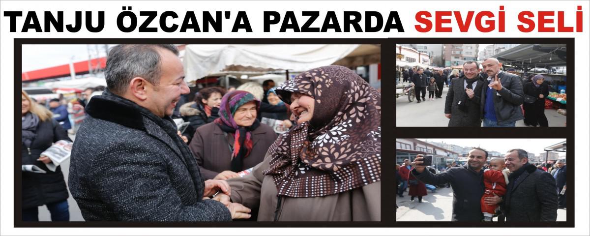 İhsaniye Mahallesinde kurulan Bolu pazarına giden Tanju Özcan, vatandaşlarla sohbet etti. Bazı vatandaşlar ise Tanju Özcan’ın boynuna sarılarak başarı dileklerinde bulundu. Gerçekleştirecekleri projelerinin yer aldığı 12 sayfalık gazeteyi vatandaşlara dağıtan Özcan, Bolu’yu el ele vererek güzelleştireceklerini dile getirdi. Vatandaşların sevgi ile karşıladığı Özcan, “Bu sevgi seline layık olacağım” diye konuştu. A. Haktan Yamantürk