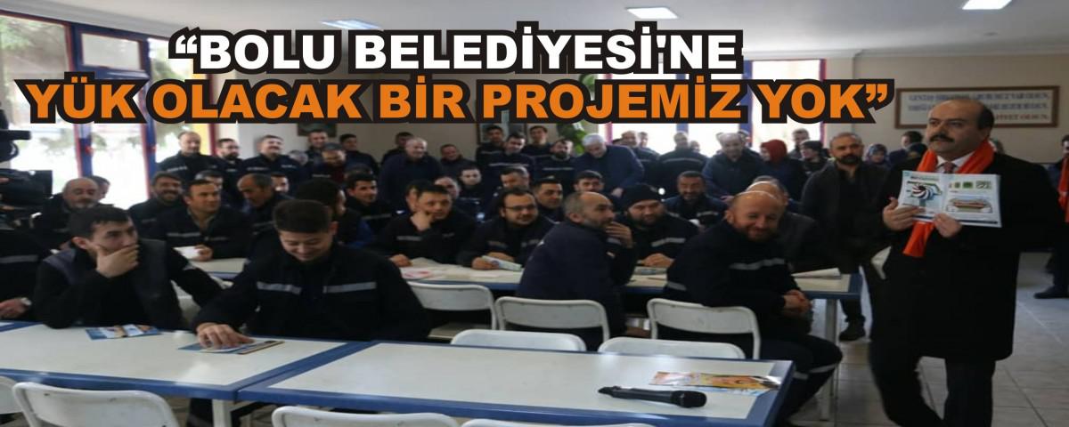 Fabrika yemekhanesinde emekçilerin sorularını yanıtlayarak, proje kitapçığı üzerinden 30 mega projesini anlatan Metin, tüm projelerinin ‘somut’ ve ‘uygulanabilir’ projeler olduğunu, ayrıca Belediye bütçesine ek bir yük getirmeyeceğini söyledi. Metin “Bolu Belediyesi’ne yük olacak bir projemiz yok. Hepsi elle tutulur, somut ve uygulanabilir projelerdir. Kaynağı da bellidir.” dedi.
