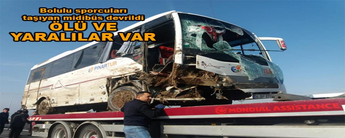 Ankara'nın Kahramankazan ilçesinde Mersin'deki Türkiye Cimnastik Şampiyonası'ndan Bolu’ya dönen hemşerilerimizi taşıyan midibüsün devrilmesi bir kişi öldü, 17 kişi yaralandı.