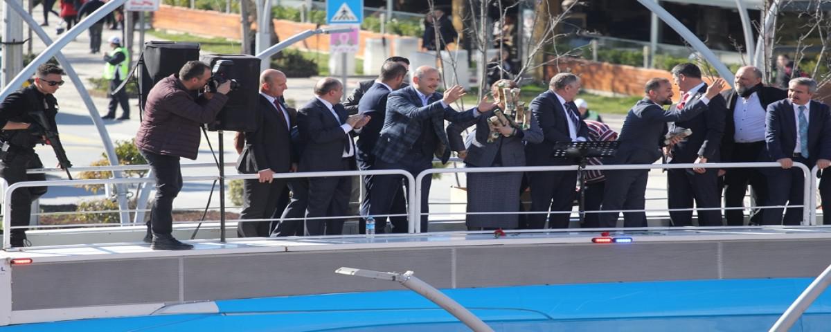 Konuşmalarının ardından Bakan Soylu, Bolu Belediye Başkan Adayı Fatih Metin, Ak Parti Bolu Milletvekilleri Arzu Aydın, Fehmi Küpçü, Ak Parti İl Başkanı Nurettin Doğanay, MHP Bolu İl Başkanı Cihan Başaran vatandaşa çiçek ve hediye dağıttı.