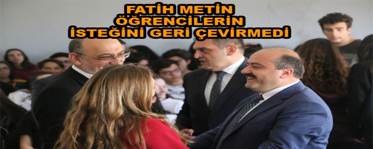 Öğrencilere Türkiye’nin petrol, altın gibi doğal zenginliklere sahip bir ülke olmadığını anlatan Metin, “En büyük zenginliğimiz sizlersiniz. Türkiye’de 30 milyon gencimiz var. Bu ülkenin dinamizmi sizlerden geliyor. Sizlere güveniyor ve inanıyoruz” dedi.