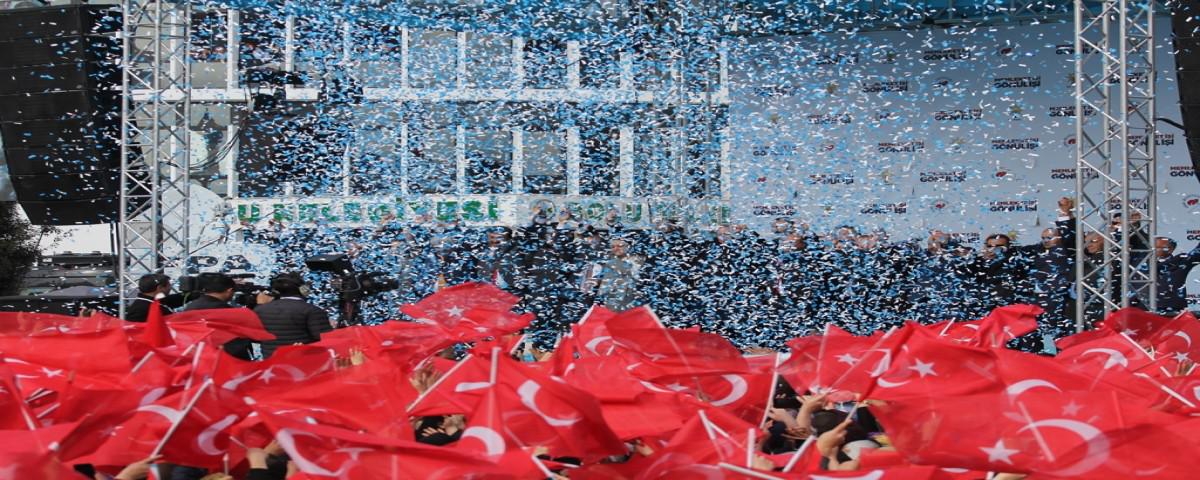 Türkiye’nin bekasını ilgilendiren sorunları da değinen Erdoğan, her türlü sıkıntıyı çözüme kavuşturacaklarını ifade ederek, “Ekonomiden, teröre, dış güvenliğe kadar Türkiye'nin bekasını ilgilenen her türlü sıkıntıyı çözüme kavuşturacağız. Her kesimin derdiyle dertlenmeye, sıkıntılarına çare olmaya devam edeceğiz. Daha fazla ter dökerek inşallah sizlerle beraber ülkemizi 2023 hedefleriyle buluşturacağız. 16 bin 500 kilometre öteden silahlarına kazıdıkları yazılarla bizi tehdit edenlere bu ülkeyi bırakmayacağız. Ülkemizin bir terör koridoruyla kuşatılmasına asla müsaade etmeyeceğiz. Milletimizin tökezlemesini bekleyenlere fırsat vermemek için hep birlikte sağlam durmak mecburiyetindeyiz. Bunun için 31 Mart'ta sizlerden rekor oy bekliyoruz. Türk milletine had bildirmeye yeltenenlere sizlerin oylarıyla hadlerini bildirmeyi istiyoruz. 31 Mart'ta verdiğiniz oylar ile milletimize kurulan tuzakları darmadağın etmenizi istiyoruz" diye konuştu.