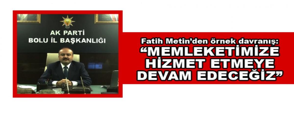 Cumhur İttifakı Bolu Belediye Başkan Adayı Fatih Metin kesinleşen açıklamaların ardından seçimi kazanan Millet İttifakı Adayı Tanju Özcan’ı tebrik ederek, “Memleketimize hizmet etmeye devam edeceğiz” dedi.