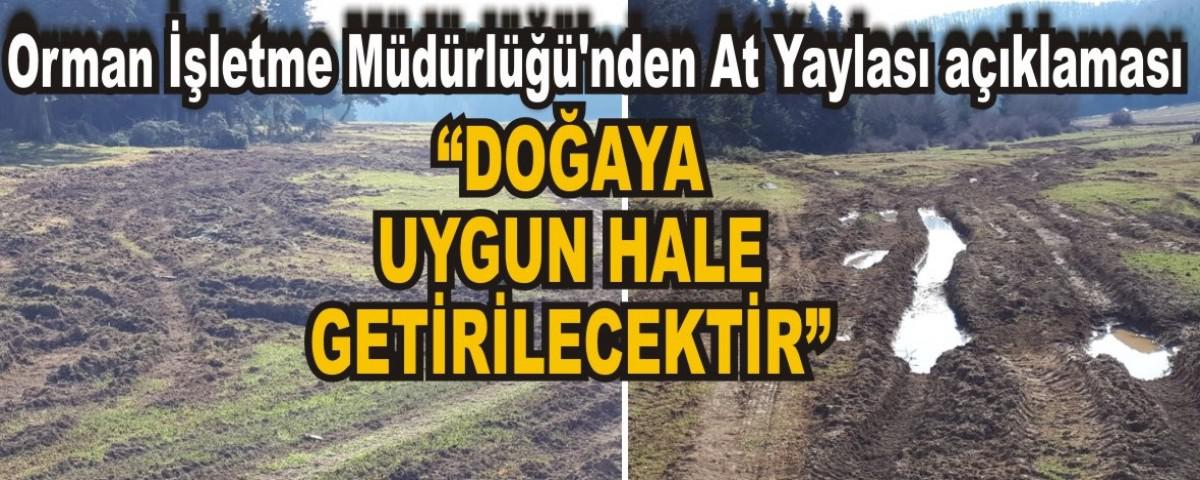 Geçtiğimiz günlerde Bolu’nun turizm ve hayvancılık açısından büyük önem taşıyan At Yaylası’nda meydana gelen tahribat gazetemizde “Siz burayı sahipsiz mi sandınız!” başlığı ile yer bulmuştu. Haber üzerine Bolu Orman İşletme Müdürlüğü’nden konu ile ilgili bir açıklama yapıldı. Yapılan açıklamada araçların teker ve envanterlerin sürüklenmesinden dolayı izler kaldığı ve doğaya uygun hale getirileceği belirtildi. Açıklamada, “İlgili gazetede tahribata uğradığı belirtilen At Yaylası civarındaki ormanlık alanda Bolu Orman İşletme Müdürlüğü tarafından ormanların sağlığı ve bakımı için ormanlık alan içerisinde hastalıklı, böcek zararına uğramış ağaçların sağlık kesimleri yapılmaktadır. Kesimi yapılan ağaçlar, ormanda böcek zararı oluşturmaması için bu zararın gözükmeye başladığı Nisan-Mayıs ayları gelmeden önce orman depolarına indirilir. Bu hastalıklı böcekli ağaçlar bu dönemde ormandan çıkarılmaz ise böcek popülasyonu artacağından bu durum ormandaki sağlıklı fertlere sirayet ederek ormanımızın tamamının kuruyup yok olmasına sebebiyet verebilecektir. Bunun için üretim çalışmaları içinde bulunduğumuz kötü hava şartlarında gerçekleştirilmektedir. Dolayısıyla yağışlar sebebiyle toprağın yumuşak olması tansport esnasında alanda bu tür görüntülere sebebiyet vermektedir. Kesilen ağaçlar nakledileceği ana kadar orman içi veya kenarındaki boşluklu alanlarda rampalarda muhafaza edilir. Bu çalışmalar esnasında yayla üzerinde betonlaşma veya doğaya aykırı tahribatlar yapılmaz. Bahse konu tahribat, Araçların teker izlerinden veya sürütülen orman emvallerinin bıraktığı izlerden kalan görüntülerdir. Üretim çalışmaları tamamlandığında bu izler İşletmemiz tarafından düzeltilecek ve doğaya uygun hale getirilecektir” ifadelerine yer verildi.
