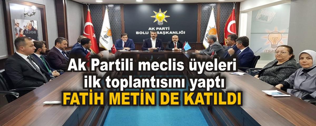 Yerel seçimler sonrası Bolu Belediye Meclisi’ne giren 11 Ak Partili meclis üyesi, İl Başkanı Nurettin Doğanay’ın başkanlığında ilk grup toplantısını gerçekleştirdi. Toplantıya Cumhur İttifakı Ak Parti Bolu Belediye Başkan Adayı Fatih Metin de katıldı.