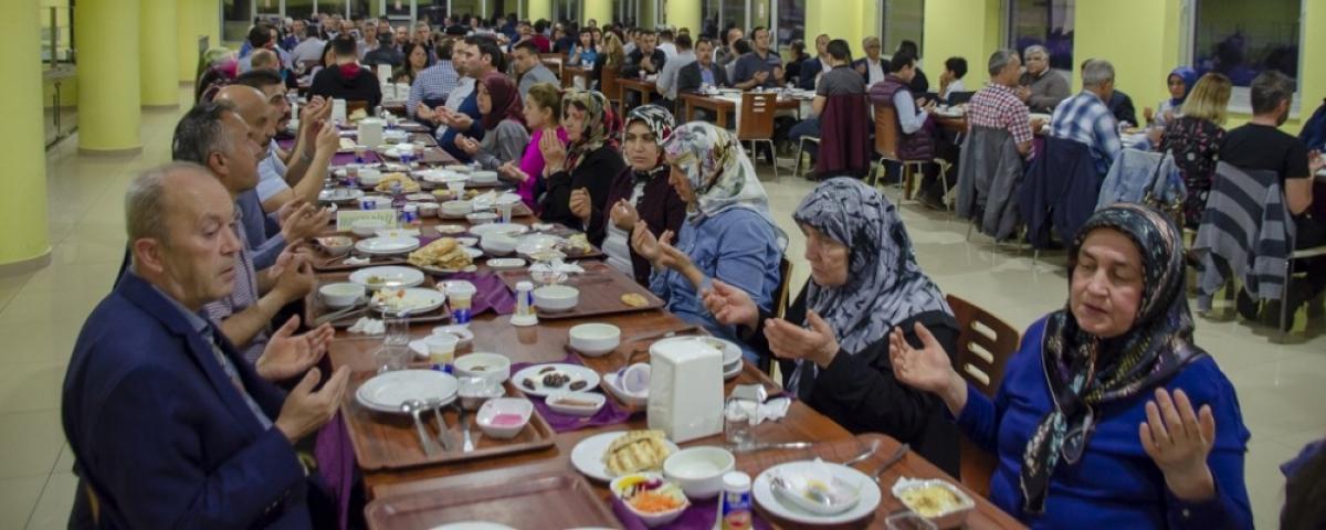 İftar yemeği Rektör Prof. Dr. Mustafa Alişarlı’nın davetiyle, Bolu Abant İzzet Baysal Üniversitesi Diş Hekimliği Fakültesi öğrenci yemekhanesinde düzenlendi. İftar buluşmasına; Rektör Yardımcıları Prof. Dr. Samettin Gündüz, Prof. Dr. Mustafa Yaman, Prof. Dr. Aydın Him, İl Müftüsü Orhan Genç, İl Milli Eğitim Müdürü Yasin Tepe, Gençlik Spor İl Müdürü Şerafettin Çilkara, Genel Sekreter Murat Tok, dekanlar, yüksekokul, meslek yüksekokulu, enstitü müdürleri ve sekreterleri, bölüm başkanları, daire başkanları ve şube müdürleri ile şehit ailelerimiz ve gazilerimiz katıldı. Rektör Alişarlı, tüm konuklarıyla yakından ilgilenerek katılımlarından dolayı teşekkürlerini iletti. A. Haktan Yamantürk