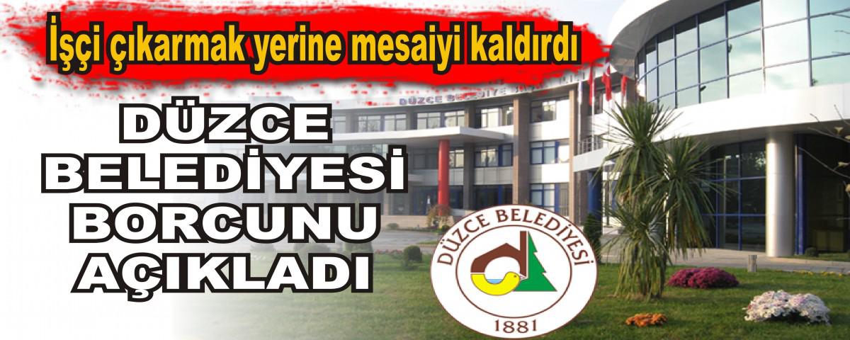 Bolu Belediye Başkanı Tanju Özcan’ın, belediyenin borcuyla ilgili yaptığı açıklamaların ardından çiçeği burnunda Düzce Belediye Başkanı Faruk Özlü’den de borç açıklaması geldi. Düzce Belediyesi’nin 477 milyon lira borcu olduğunu belirten Başkan Özlü, mali disiplinle belediyenin en geç 2 yıl içerisinde rahatlayacağını açıkladı. Özlü, bu zaman zarfında belediyeden de işçi çıkartmayacağını sadece mesai uygulamasının kaldırılacağını belirtti.