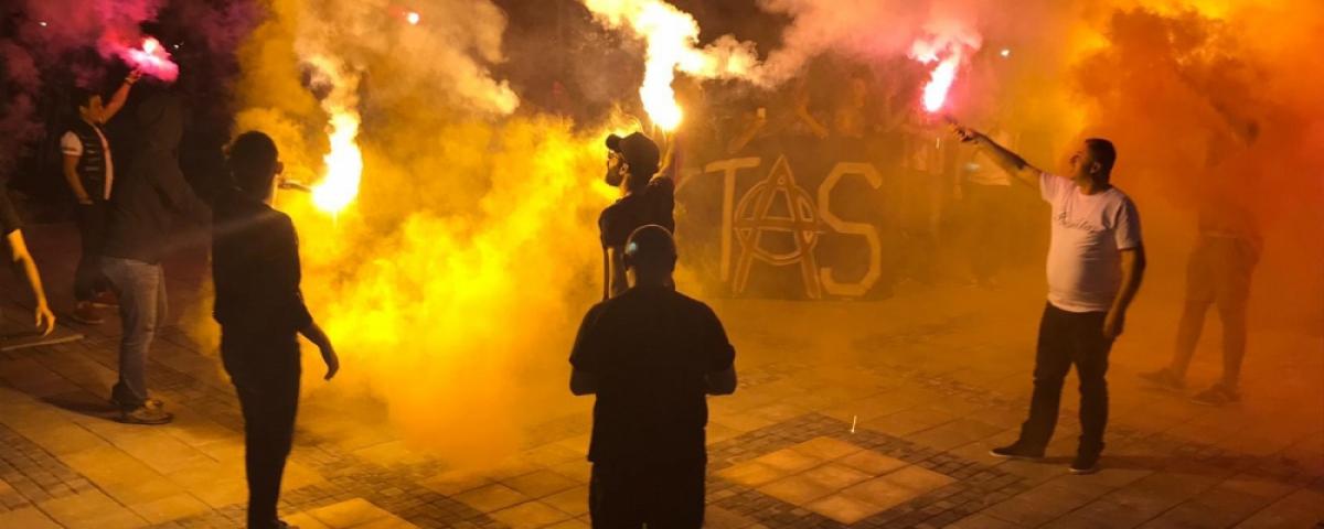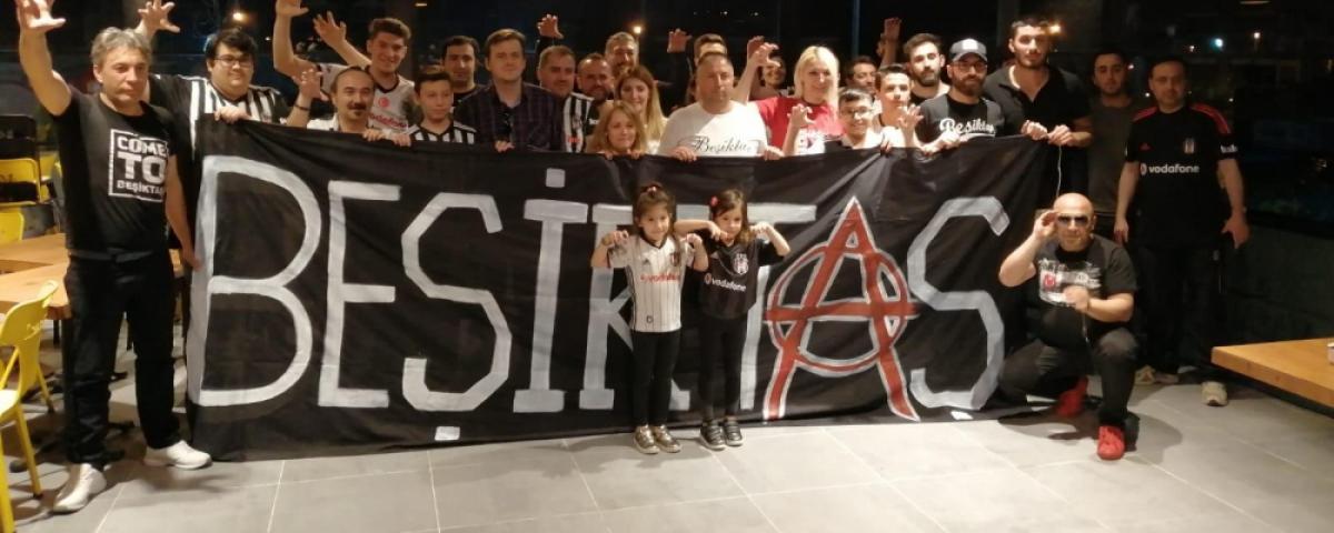 İftar sonrası grup meşaleler yakarak, Beşiktaş besteleri söyledi.