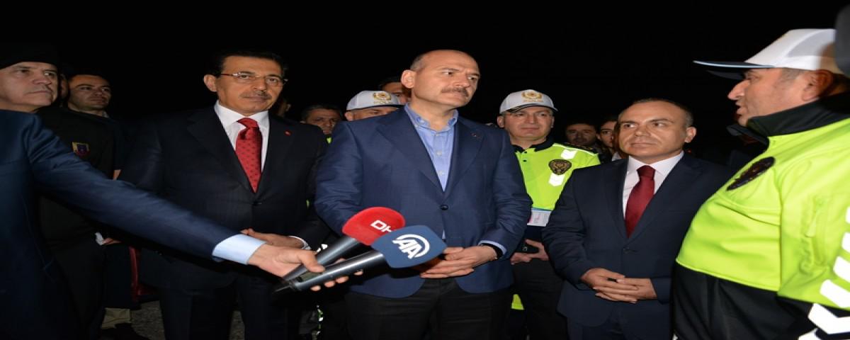 İçişleri Bakanı Süleyman Soylu, 00.30’da İstanbul’dan helikopterle Bolu’ya hareket etti ve otoban ile D-100 Karayolu’nu havadan denetleyerek Gerede ilçesine geldi.