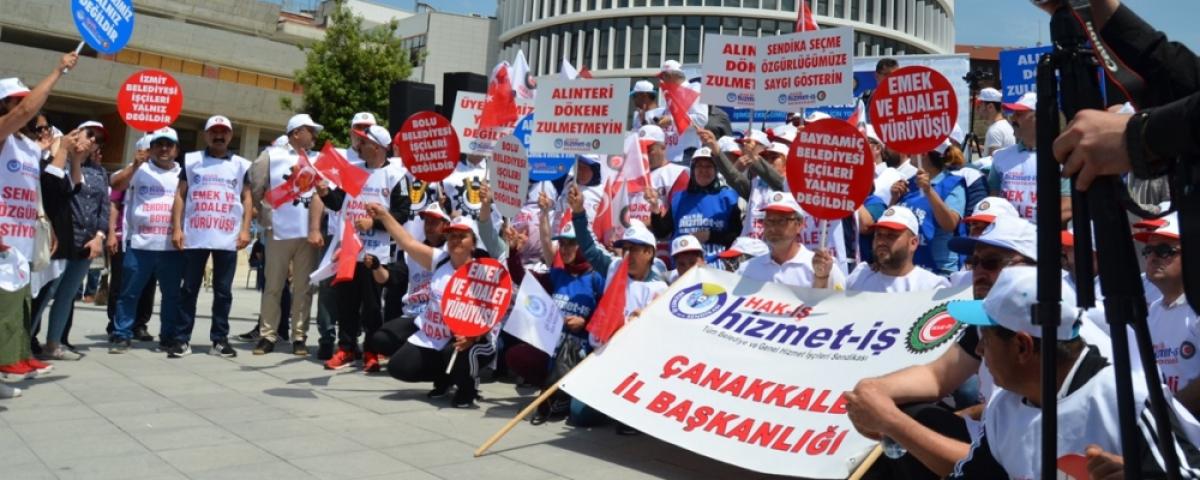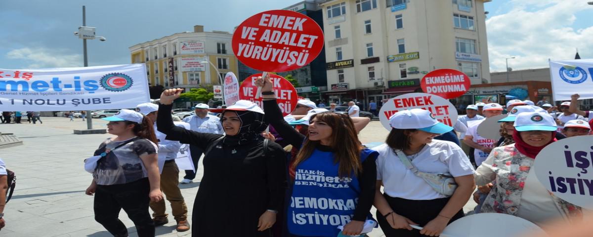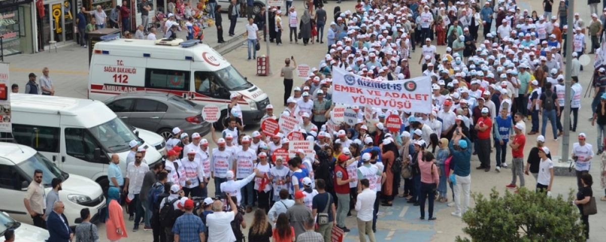 Geçtiğimiz aylarda Hizmet-İş Sendikası’na bağlı işçilerin Bolu Belediyesi tarafından işten çıkarılmasına karşı sendika harekete geçti. 49 gün önce Bolu Belediye Binası önüne kurdukları çadırda işten çıkarmaları protesto eden sendikacılar bugün ise yürüyüşe geçti. Geçtiğimiz günlerde Hak-İş Genel Başkanı Mahmut Arslan tarafından açıklanıp organize edilen yürüyüşe çok sayıda sendika temsilcisi, Türkiye’nin farklı bölgelerinden yüzlerce işçi katıldı.