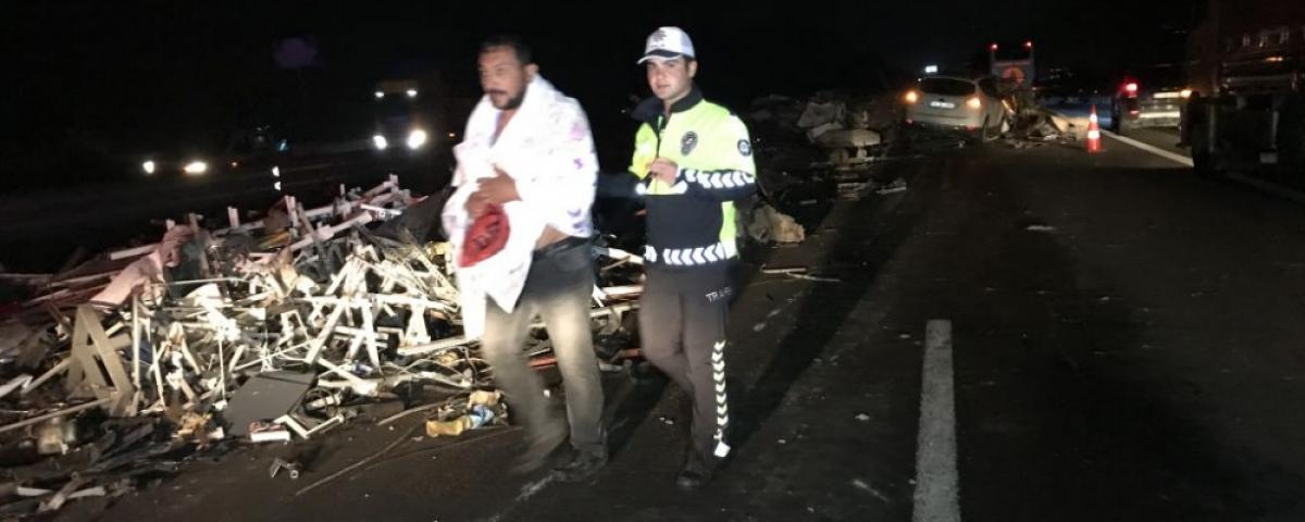 Olay, gece saatlerinde TEM Otoyolu Bolu kesimi, Köroğlu Park mevkiinde meydana geldi. Edinilen bilgiye göre, İstanbul istikametinde seyreden Musta Güngör kontrolündeki hurda yüklü TIR, şoförünün direksiyon hakimiyetini kaybetmesi sonucu yol kenarındaki bariyerlere çarpıp refüje düştü. Kaza sonucunda TIR’ın dorsesindeki hurdalar yola saçılırken, bu esnada aynı istikamette ilerleyen Sani Polat idaresindeki cip yola saçılan hurdalara çarptı. Çevredeki vatandaşlar kazayı 112 Acil ve Polis ekiplerine bildirdi.