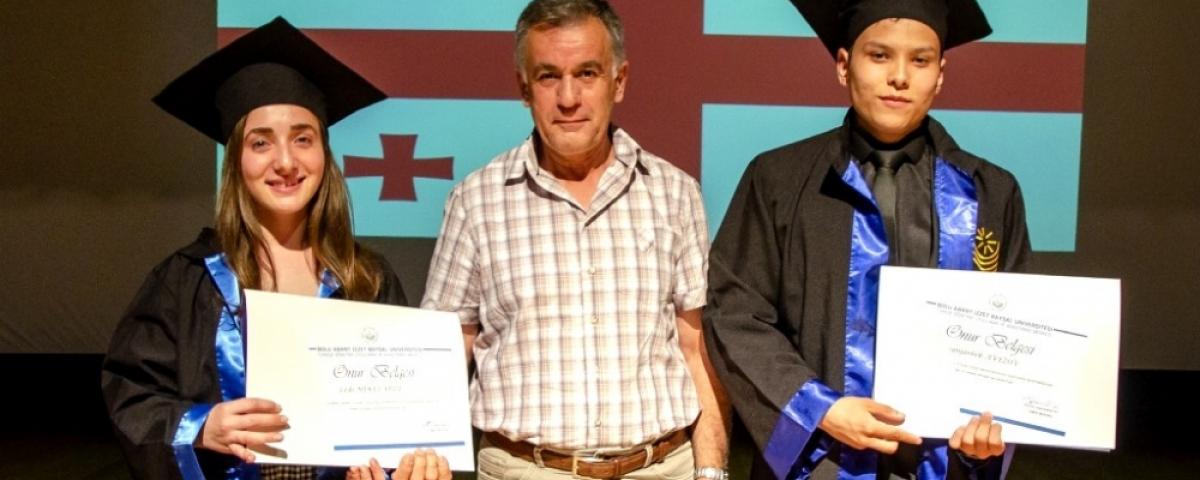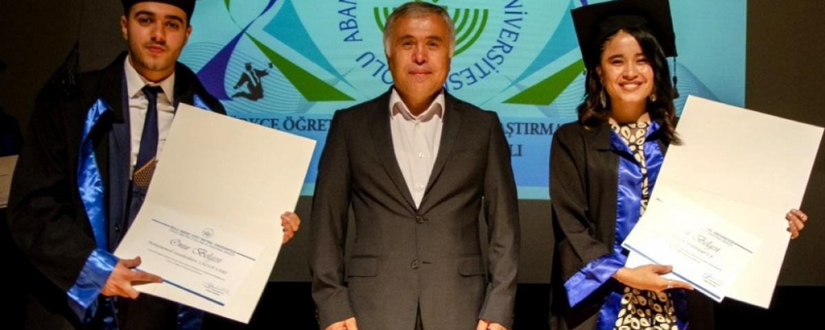 Mezuniyet töreninde, tüm Dünya’ya sevgi, barış ve hoşgörü çağrısı yapan uluslararası öğrenciler, Türkçe hazırladıkları çeşitli etkinliklerle mezuniyetlerini kutladılar. İzzet Baysal Kültür Merkezi Mavi Salonda gerçekleştirilen mezuniyet törenine; Rektör Yardımcısı Prof. Dr. Samettin Gündüz, TÖMER Müdürü Prof. Dr. Halit Karatay, akademisyenler, uluslararası öğrenciler ile aileleri ve yakınları katıldı.