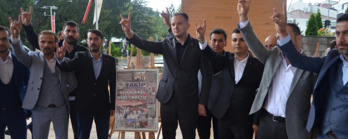 Son olarak Ak Parti İl Başkanı Nurettin Doğanay, milletin o gün dimdik ayakta durduğunu söyleyerek, “Bolu Gazeteciler Cemiyetine ve başkanına bugünkü sergiden dolayı teşekkür ederim. 15 Temmuz gecesi bundan 3 yıl önceydi saat 10.00’a yakın bir zamanda haber aldığım bir zamanda başladı ve 27 gün boyunca Bolu’da meydanlarda tüm hemşerilerimizle birlikte alandaydık. Rabbim bu millete bir daha tekrar bir 15 Temmuz destanı yazacak, yaşatacak bir anı yaşatmasın zor günlerdi. 251 vatan evladı şehit olmuştu. Bunların içinde asker olanı vardı, sivil olanı vardı, polis olanı vardı ama hiç kimse o gece, hiçbir siyasi parti ayrımı gözetmeden milletimiz meydanlara indi. Türkiye’de darbe kalkışmasına karşı milletimiz dimdik ayakta durdu. O gece canlarını veren şehitlerimize Allah’tan rahmet diliyorum. Ailelerine, çocuklarına, evlatlarına, anne ve babalarına sabırlar diliyorum. Bu önümüzdeki yüzyıl adına bir örnekti. Daha dün Venezuela’da yine halkın bir direnişi ile önlendi. Dünyada ilk defa askeri bir darbeye karşı sivil bir iradenin duruşu karşısında darbe geri püskürtüldü. Venezuela’daki örnek de Türkiye’deki örneğin bir yansımasıydı. Bundan sonra dünyada bir darbe kalkışması olacağı zaman insanların bir defa daha oturup düşünmesi gerekiyor. Türkiye çok darbe gördü, çok canlar yandı, çok aileler, anneler gözü yaşlı kaldı. Hayatının baharında yaşı tutmadığı için yaşı büyütülerek asılan kardeşlerimizi hatırlıyoruz ve biliyoruz. Rabbim bir daha milletimize yaşatmasın, o gece sokaklara inen vatandaşlarımız önünde saygı ve muhabbetle eğiliyorum” ifadelerini kullandı.