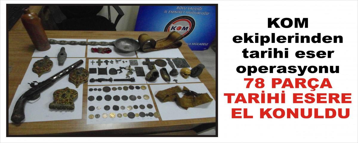 Edinilen bilgiye göre, İl Emniyet Müdürlüğü Kaçakçılık ve Organize Suçlarla Mücadele Şube Müdürlüğü ekipleri bir araçta tarihi eserlerin kaçırıldığı yönünde ihbar aldı. İhbarı değerlendiren KOM ekipleri D – 100 Karayolu üzerinde aracı durdurarak arama yaptı. Yapılan aramalarda araçta 78 adet tarihi eser bulunurken, araç sürücüsü 36 yaşındaki Z.Y. gözaltına alındı. Bulunan tarihi eserlere ise el konuldu.