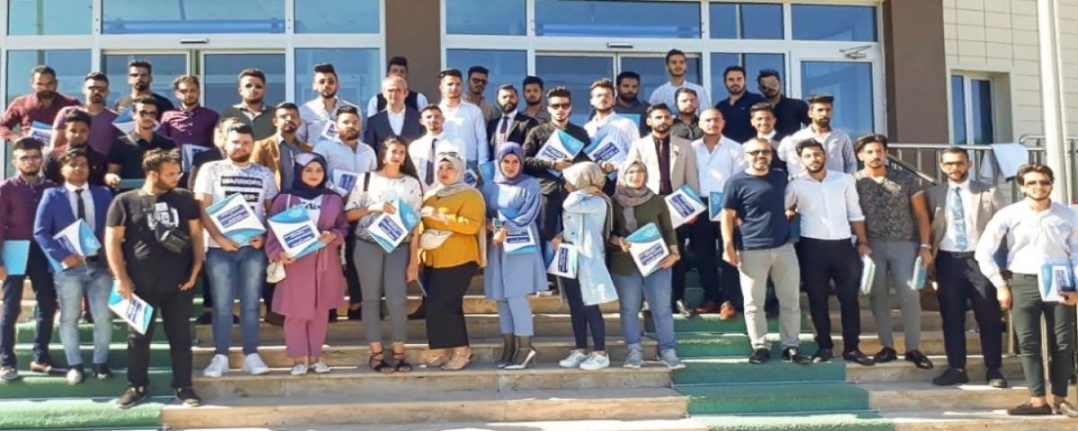 Rektörlükte gerçekleştirilen törende, üniversitemiz Tıp ve Sağlık Bilimleri Fakültelerinde stajlarını tamamlayan 53 Iraklı öğrenciye katılım sertifikaları, Rektör Vekili Prof. Dr. Mustafa Yaman ve SÜYAM Müdürü Doç. Dr. Hanifi Üzüm tarafından takdim edildi.
