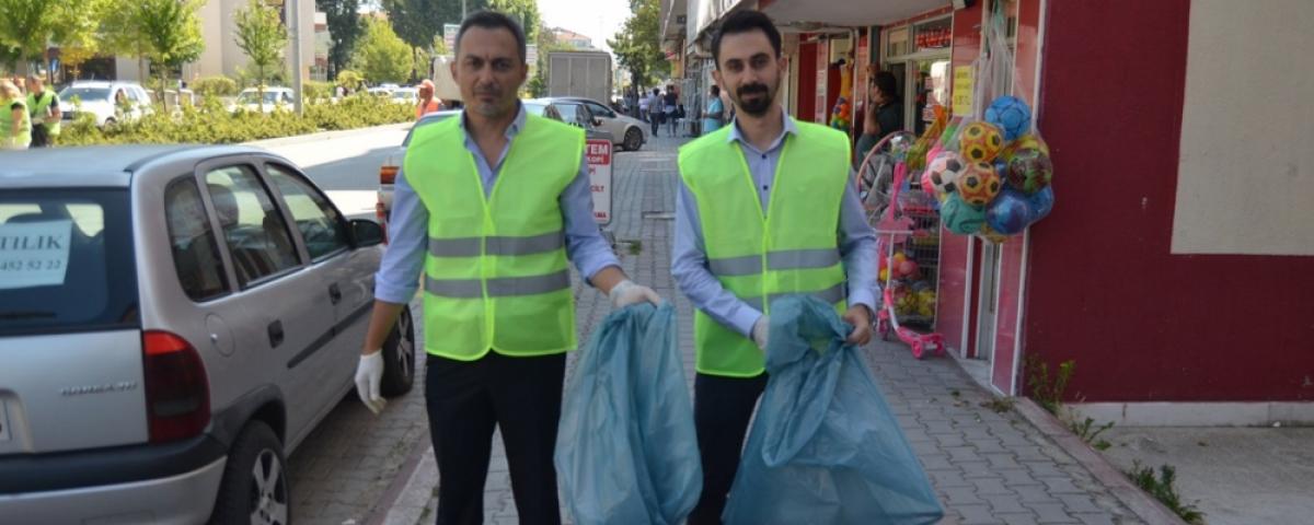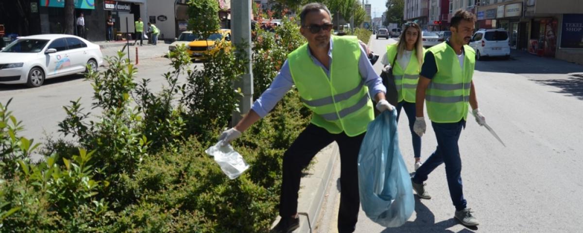 Açıklamaların arından Bolu Belediye Başkanı Tanju Özcan, Bolu Gazeteciler Cemiyeti Başkanı Bülent Velioğlu ve gazeteciler sarı yelek giyerek Kent Meydanından başlayarak Borazanlar Mahallesi boyunca yaklaşık 1.6 km boyunca çöp toplayarak temizlik yaptı.