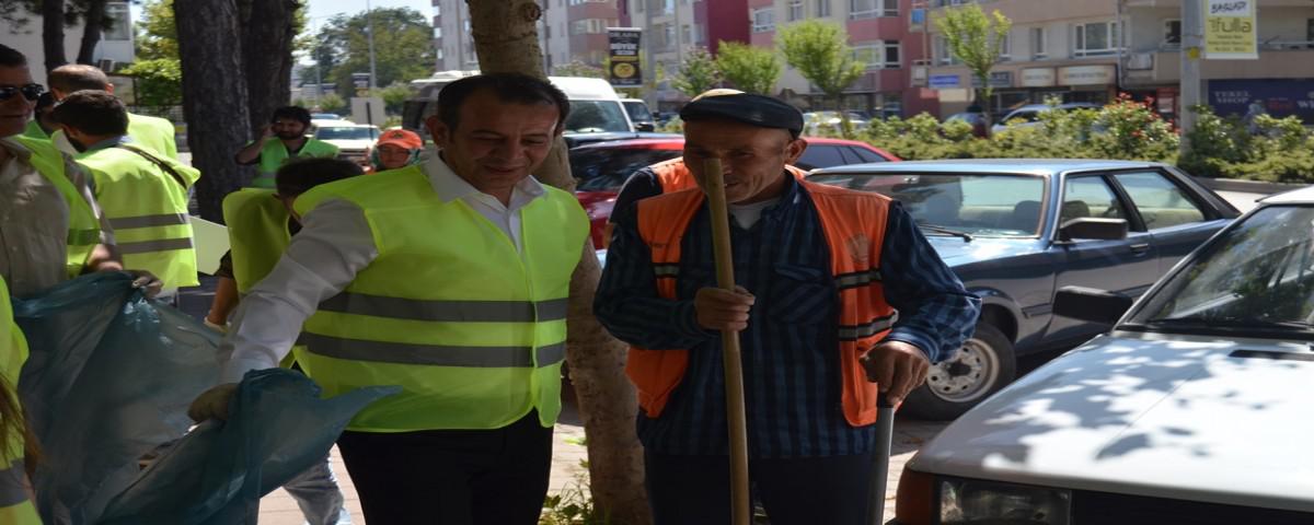 ‘Bir kere yerden çöp alan bir daha yere çöp atmaz’ etkinliğinde Bolu Gazeteciler Cemiyeti Başkanı Bülent Velioğlu ve gazeteciler ile kent meydanın da bir araya gelen Bolu Belediye Başkanı Tanju Özcan Kent Meydanından başlayarak Borazanlar Mahallesi boyunca çöp toplayarak temizlik yaptı. Bir yıl içersinde Türkiye’nin en temiz ili olmayı hedeflediklerini söyleyen Başkan Özcan; “Bir kere yerden çöp alan bir daha yere çöp atmaz kampanyasını başlattık. Amacımız Bolu’yu Türkiye’nin en temiz şehri haline getirmek. Bu konu da toplumsal duyarlılığı arttırmak. Tabi bu çağrımıza da ilk olarak gazetecilerin dönüş yaptı. Bizi çok mutlu etti. Gazeteci arkadaşlarımızın çevreye ve temizliğe ilişkin duyarlılığı bizleri çok mutlu etti. Bundan sonraki süreçte bu tür kampanyalarımız devam edecek. Yarında tüm Bolu Belediyesi çalışanları ile birlikte şehrin güney bölgesinde böyle bir çalışma yapacağız. Amacımız bu temizlik ile hassasiyeti toplumun tabanına yayabilmek. İddialıyız bu konu da bir yıl içersinde Türkiye’nin en temiz ili neresi dendiğinde Bolu denmesini sağlamak istiyoruz” dedi.