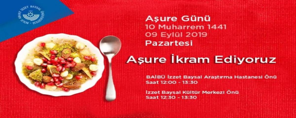 Yapılacak organizasyonla ilgili üniversite resmi sitesinden yapılan duyuruda, “Bolu Abant İzzet Baysal Üniversitesi Rektörlüğü organizasyonunda Aşure Günü olan 9 Eylül Pazartesi günü Aşure ikramı yapılacaktır. BAİBÜ İzzet Baysal Eğitim ve Araştırma Hastanesi önü saat 12:00 ile 13:30 Kültür Merkezi önü saat 12:30 ve 13:30 saatleri arasında ikramlar sunulacaktır.” denildi.