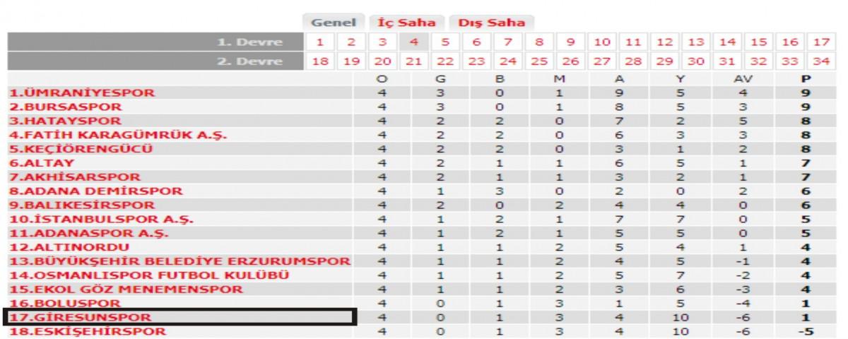 Giresunspor, ligde geride kalan 4 maçta bir beraberlik alırken, sahadan 3 kez mağlubiyetle ayrıldı.