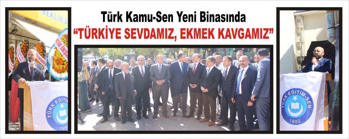 Açılış töreninde konuşan Türk Kamu-Sen ve Türk Eğitim-Sen İl Temsilcisi Erhan Bayram, “Değerli sendikalarımızın il temsilcileri hepimiz açılışımıza hoşgeldiniz. Bu binamızın açılması sürecinde bizden desteğini esirgemeyen genel başkanımıza teşekkürlerimi iletmek istiyorum. Bu süreç içerisinde gecesi gündüzü olmadan çalışanlarımıza, kıymetli üyelerimize daha iyi hizmet verebilmemiz adına yeni binamızda bizlere destek veren çok değerli üyelerimize, destekleri için çok değerli Ülkü Ocakları İl Başkanımız İsmail Akgül’e yine çok değerli sendika üyelerimize ayrı ayrı şükranlarımı sunuyorum. Değerli arkadaşlarımız göreve geldiğimiz bir sene içerisinde daha sistematik ve daha kurumsal bir sendika anlayışı yerleştirmek adına çaba sarf ediyoruz. Bundan sonra binamızı daha etkili daha çok katılımla şenlendirebiliriz bunun çabası ve gayreti içerisinde olacağız. Sözümü çok fazla uzatmadan emeği geçen tüm arkadaşlarıma ayrı ayrı şükranlarımı sunuyorum” dedi.
