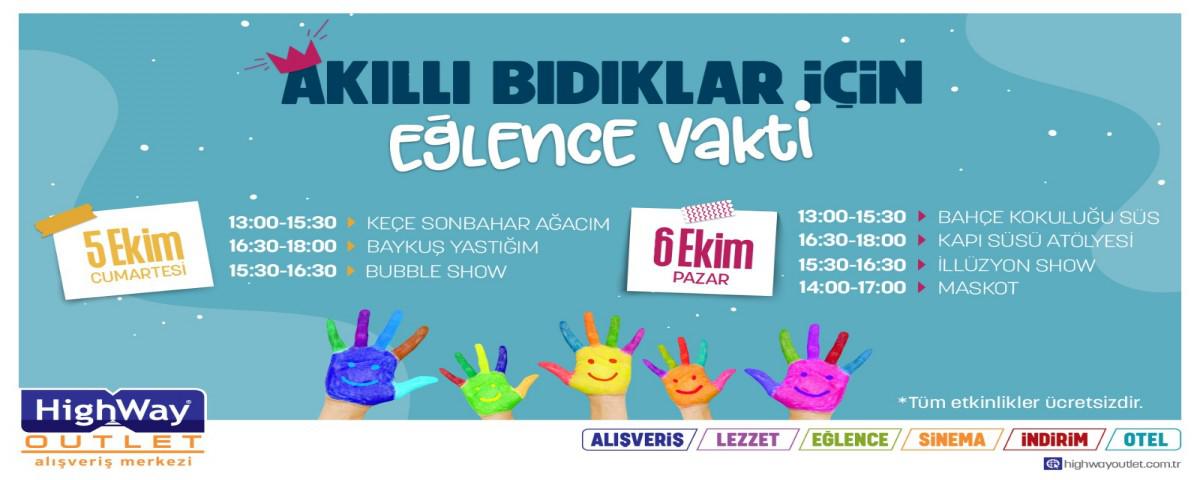 Ekim ayı boyunca her haftasonu birbirinden eğlenceli, eğitici ve öğretici Çocuk Atölyeleri, Maskot, Balonbaz ve İllüzyon Gösterileri Highway Outlet’te çocuklarla buluşuyor. 5-6 Ekim, 12-13 Ekim, 19-20 Ekim ve 26-29 Ekim tarihlerinde Highway Outlet Kiğılı mağazası önünde, 13:00 ile 18:00 saatleri arasında gerçekleşecek etkinliklerde, çocuklar yeteneklerini sergileyecekleri atölye etkinlikleriyle hem eğlenip hem öğrenirken, ünlü isimlerin balonbaz ve illüzyon gösterileriyle heyecanı, keyfi ve mutluluğu bir arada yaşayacaklar. Üstelik tüm etkinlikler de ücretsiz olarak çocuklarla buluşacak.