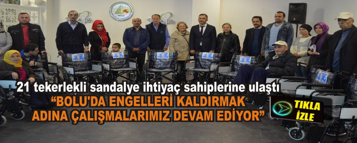 Bolu Belediyesi tarafından 21 tekerlekli sandalye, ihtiyaç sahibi engelli vatandaşlara dağıtıldı. Tekerlekli sandalyelerin dağıtımında konuşan Bolu Belediye Başkan Yardımcısı ve Başkanlık Sözcüsü Rasim Özdemir, “Bolu’da engelleri kaldırmak adına çalışmalarımız devam ediyor. 21 tane daha tekerlekli sandalyeyi bugün itibari ile ihtiyaç sahiplerine teslim ediyoruz” dedi.