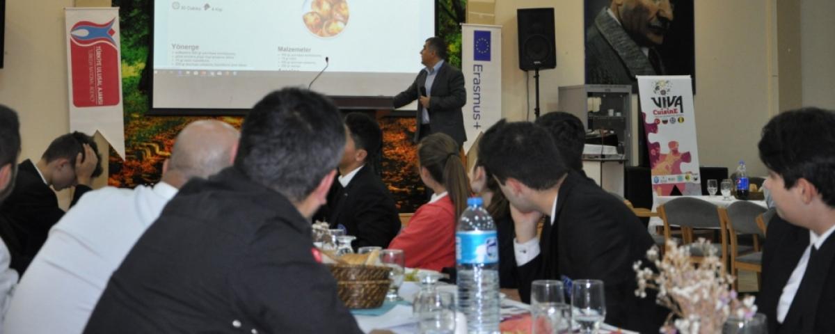 Ayrıca katılımcılara "Avrupa Mutfak Terimleri Kitabı",Proje broşürü ,bülteni ve diğer tanıtım malzemeleri verildi. Bundan sonra ortak ülkelerin kültürlerine ait yemekler geliştirilen aşçıların internet üzerinden oluşturulan oluşturulan online platforma nasıl yükleme yapabilecekleri hakkında bilgi verildi. Proje kapsamında Türk ortaklarla birlikte proje ortağı olan Yunan, Bulgar, Romen ortaklarla 2 yıllık bir süreçte Türkçe ,İngilizce Yunanca, Bulgarca, Romence ve İspanyolca bir online platform "Avrupa Mutfak Terimleri Kitabı, Yemek Kitabı oluşturulmuş olup hem Türk mutfağının hem Avrupa mutfağının hizmetine sunuldu. Elif Erdoğan
