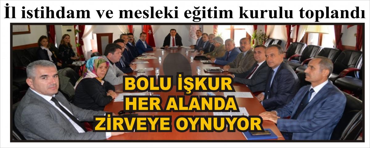 2019 yılı İl İstihdam ve Mesleki Eğitim Kurulu 4’üncü Olağan Toplantısı Bolu Valisi Ahmet Ümit başkanlığında yapıldı. Toplantıda gündem maddeleri görüşülerek karara bağlandı. İŞKUR İl Müdürü İsmail Yalçın yaptığı bilgilendirmede Bolu’nun İşbaşı Eğitim Program Katılımcı sayısında Türkiye 1’ncisi, İmalat Sektöründe İYEP sıralamasında Türkiye 2’ncisi, İş yeri ziyaretlerinde Türkiye 4’üncüsü, Bireysel danışmanlıkta Türkiye 58’incisi olduğunu söyledi.