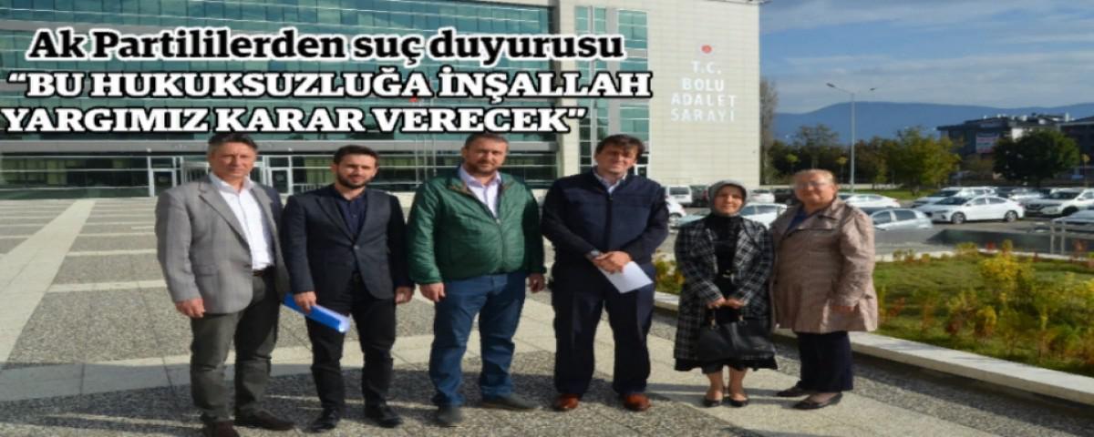 Bolu Belediye Meclisi Ekim Ayı 2. Toplantısı’nda geç kaldıkları gerekçesiyle meclis başkanı Tanju Özcan tarafından geç kaldıkları gerekçesiyle yok sayılan AK Parti Grup Başkan Vekili Burak Balaban ve Ak Parti Bolu Belediyesi meclis üyeleri adliyeye giderek suç duyurusunda bulundular. Adliye çıkışında açıklamalarda bulunan AK Parti Grup Başkan Vekili Burak Balaban; “Belediyede yaşanan son üzücü olaylardan sonra maalesef Ak Parti grubu ve Milliyetçi Hareket Partisi meclis gurubu belediye de Bolu halkının verdiği yetkiyi kullanamamışlardır. Bu kullanamamaktaki en büyük problem meclis başkanlık makamının uyguladığı anti demokratik tavırdır. Biz yine meclisimize saatinde gelmiştik. Fakat aşağıdaki yoğunluktan dolayı, kapıların geç açılmasından dolayı meclise zamanında yetişemedik. Bundan dolayı bire bir kendi şahsım adına sorduğumda bana başkan mecliste oylama hakkımızın olmadığını ve sadece misafir olarak bulunabileceğimizi bana kendisi söyledi. Bundan ötürüde bunun hukuki olmadığını söyledik. Hatta meclis gündeminde bulunan bazı konuların birinci mecliste olmadığını da gördük. Onlara da mecliste olsaydık itiraz edecektik. Fakat mecliste oy hakkımız olmadığı için bunları hukuk yoluyla yapmak zorunda kaldık. Keşke bu durum yaşanmasaydı bizde burada olmasaydık. Ama yapacak bir şey yok bu adaletsizliğe, bu hukuksuzluğa inşallah yargımız karar verecek. Biz idari mahkemesine başvurumuzu yaptık. İnşallah kararın çıkmasını bekliyoruz. Sonucu bekleyeceğiz” ifadelerini kullandı.