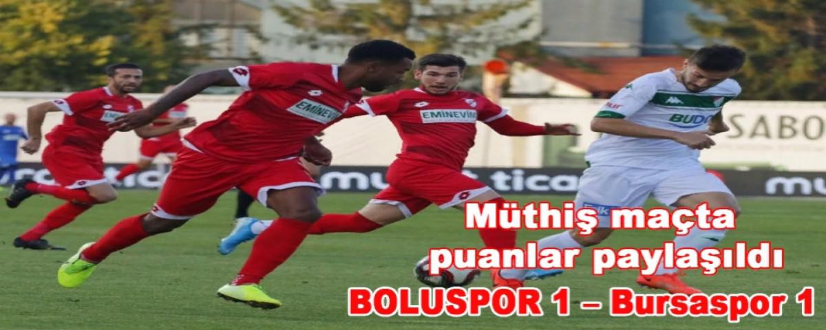 TFF 1. Lig’in 11’inci haftasında Boluspor evinde, Bursaspor’u konuk etti. Maç boyunca üstünlüğünü korumayı başaran kırmızı beyazlılar yine de Bursaspor ile 1– 1 berabere kaldı. Boluspor’un bu beraberlik ile puanı 10’da kaldı. Öte yandan Boluspor karşılaşma boyunca bir çok fırsat yakalasa da çerçeveyi bulamadı.