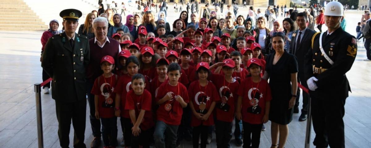 Mehmet Akif Ersoy İlkokulu 3-A sınıfı öğrencileri için Ankara gezisi düzenleyen Okul Müdür Yardımcısı Ali Ala ve Sınıf Öğretmeni Eylül Demirtaş, Gazi Mustafa Kemal Atatürk’ün ölümün 81. yalında kabrinde ziyaret ettiler. Atatürk mozolesine okul adına çelenk koyan sınıf öğretmeni Eylül Demirtaş anı defterine öğrencileri, öğretmen arkadaşları ve okulu adına duygularını paylaştı.