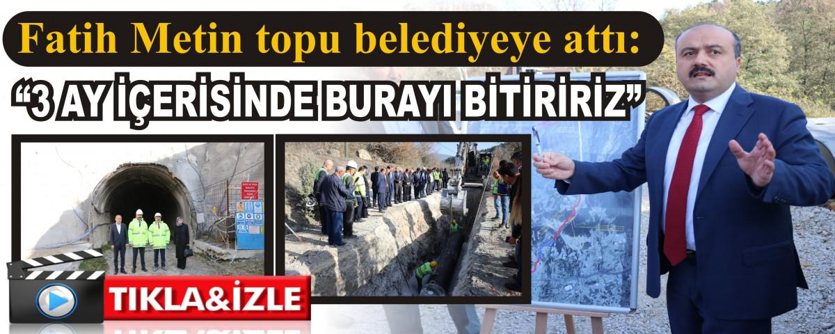 Tarım ve Orman Bakanı Yardımcısı Fatih Metin, Bolu’da çeşmelerden içme suyu akmasını sağlayacak olan Karadere Tüneli’nde incelemelerde bulundu. Bakan Yardımcısı Metin, “Şu ana kadar belediye bu konuda da adım atmadı. Buradan sizin vasıtanız ile seslenmiş olalım, belediye bunu bir an önce yaparsa biz 3 ay içerisinde burayı bitiririz” dedi.