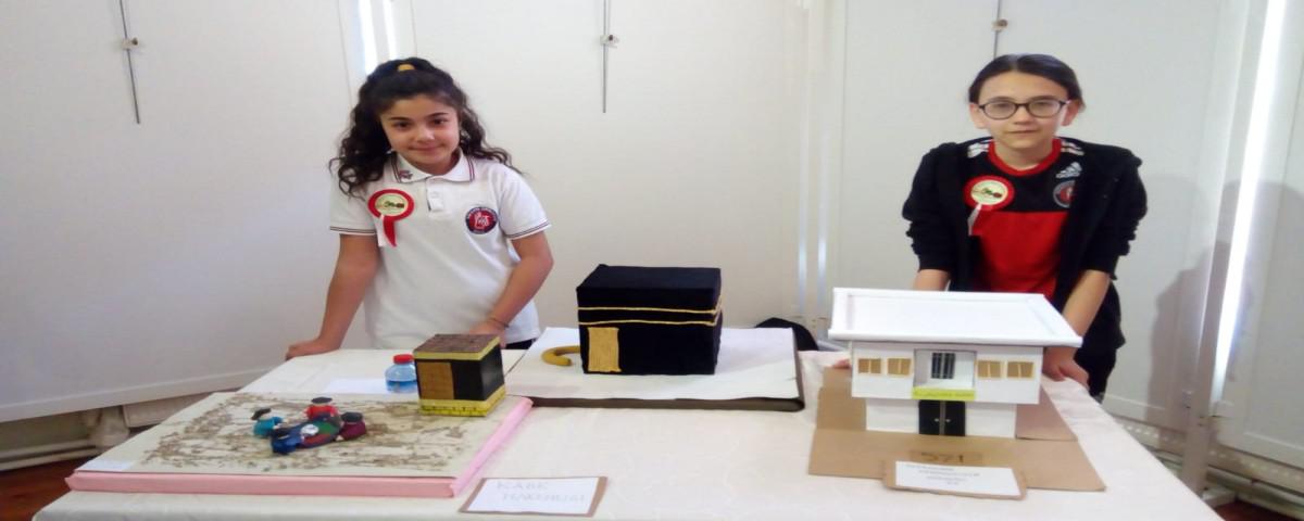 Sakarya Orta Okulu Din Kültürü ve Ahlak Bilgisi öğretmenleri Fatma Doğan Üzüm ve Hilal Fedaker, Özel Eğitim öğretmenleri Ayça Güler Özkan ve Zeynep Doğan ile Teknoloji ve Tasarım öğretmeni Ayşe Meryem Bağlan koordinesinde öğrenciler tarafından yapılan çalışmaların başında öğrenciler vardı.