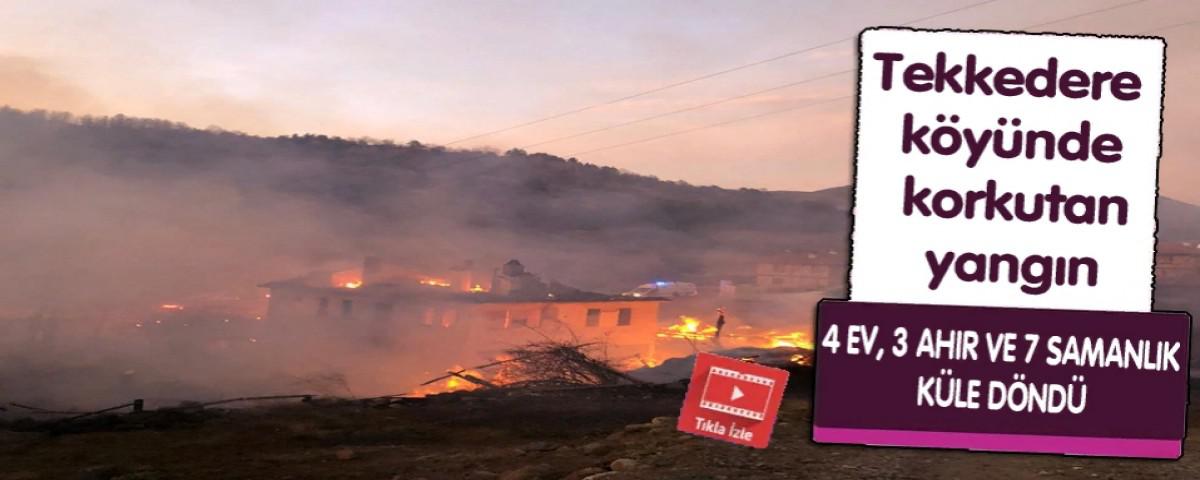 Merkeze bağlı Tekkedere köyünde çıkan yangın sonucunda alevler içercinde kalan 4 ev, 3 ahır ve 7 samanlık küle döndü.