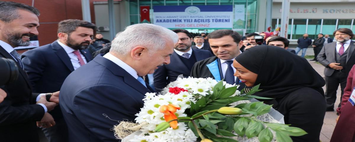 Konuşmasında BAİBÜ’nün akademik yılının açılışı ile ilgili esprili konuşan Yıldırım, “Bu yıl boşa çıktığımız için çok fazla akademik yıl açılışına katıldık. Aslında bu kadar gecikmeyecekti diğer üniversitelerin uzayıp giden listesinin ardından nihayet Bolu Abant İzzet Baysal Üniversitesinin akademik yıl açılışına katılıyoruz. Neredeyse akademik yılın yarısı geçti. Akademik yıl bahane, sizlerle tanışmak bir araya gelmek Bolu’nun güzel insanları ile bir araya gelmek bizim için çok özel bir an” dedi. Yıldırım’ın bu sözlerinin ardından salonda kahkaha tufanı yaşandı.